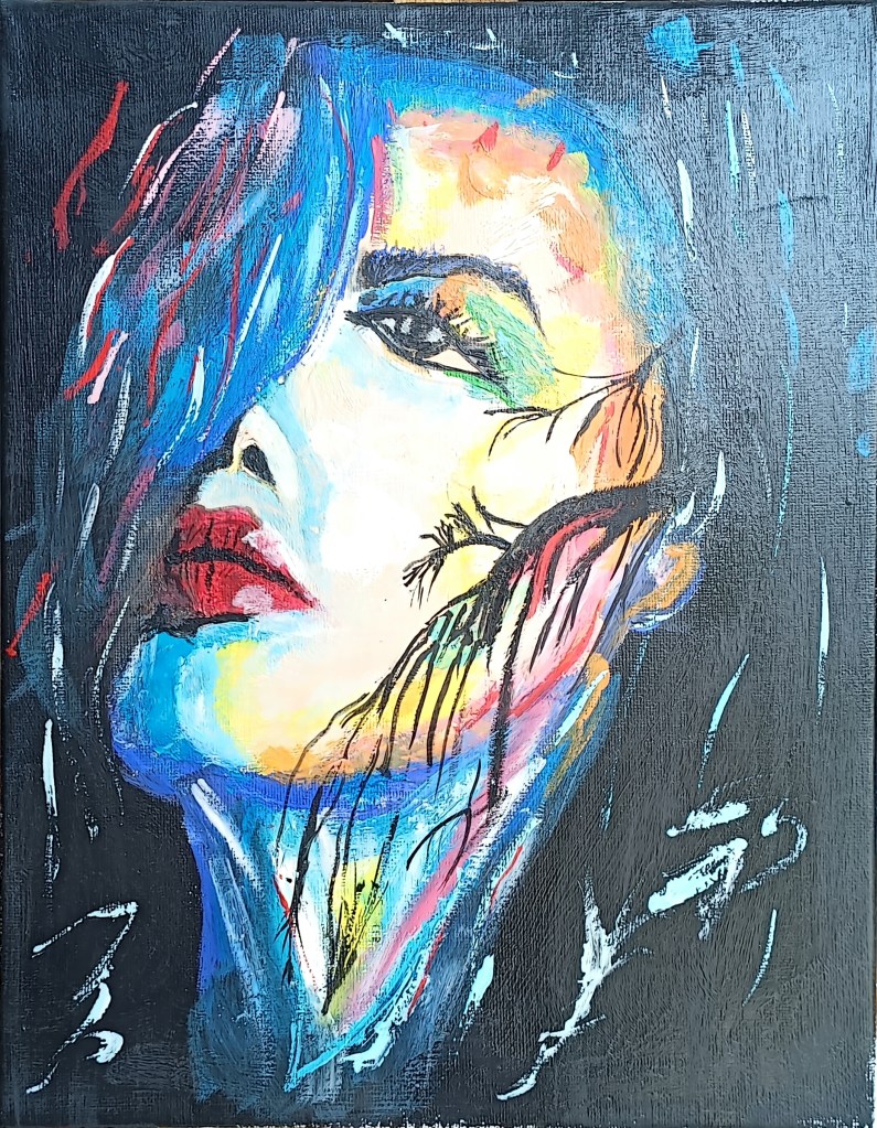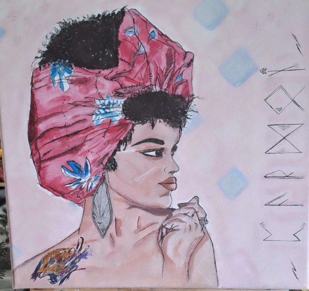 Peinture aquarelle symbolisant dans l’invisible côté féminin chez cet homme. Personnalisée avec un tatouage runique.