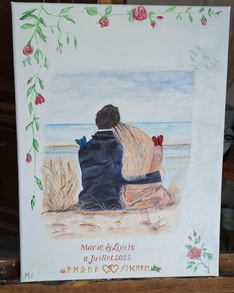 Peinture réalisée pour un cadeau de mariage selon le faire-part.